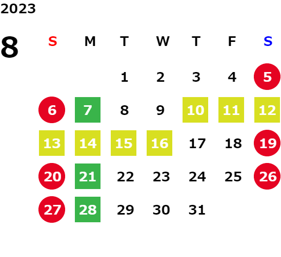 8月11日(月)~8月18日(月)の間、全拠点休業とさせていただきます。8月19日(火)より通常営業を再開いたします。